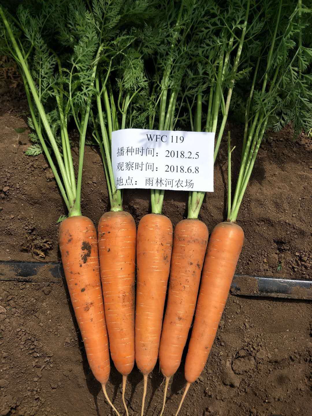 成熟期105天左右,适合春秋两季种植;2.低温条件下,抗抽薹能力较强;3.根形顺直,整齐性好,收尾圆钝,表皮红亮,皮、肉、芯三红,成熟后根长20厘米左右,单根重200-300克,产量高;4.口感好,肉质结构紧实,是清洗储藏、带苗销售、加工等多用品种; 5.缨子嫩绿长青,直立性好,田间保持时间长;5.成熟后根形稳定,田间保持力强。